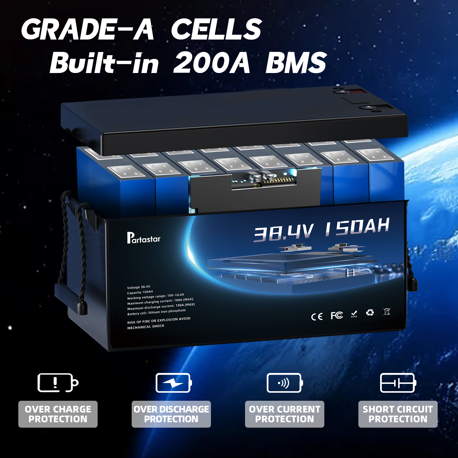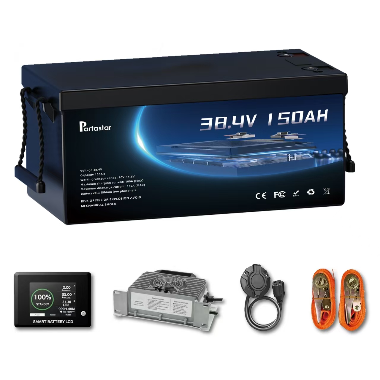 The Partastar 38.4V 150Ah LiFePO4 Battery is a high-performance lithium iron phosphate battery designed for reliable power storage and long service life. It delivers stable energy output with excellent safety features and is ideal for solar systems, RVs, marine power, and off-grid applications.