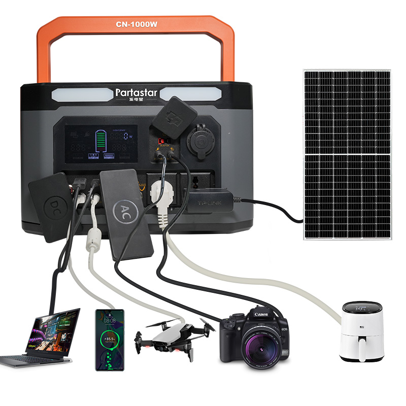 Portable power station 1000W support wireless charging, QC3.0, Type-c fast charging function. Pure Sine Wave 110V/220V AC Outlet.